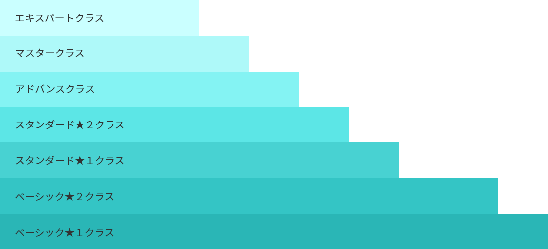 「オリジナルゲーム作成コース」、「ロボットプログラミングコース」の両コースに7段階のレベル別クラスがあります。学年に関係なく、お子様のレベルに合ったクラスからスタートできます。